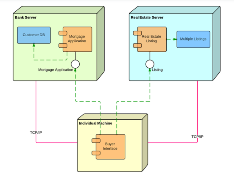 - 노드, 컴포넌트, 커넥터 등 시스템의 물리적 자원 배치를 나타냄