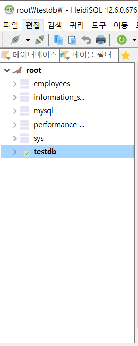 testDB 생성새로고침 후 testDB 생성 확인