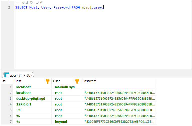 # mysql.user라는 뷰를 조회
